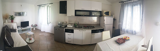 The main house offers a living room and a fully equipped kitchen, 2 bedrooms with double bed and bathroom.