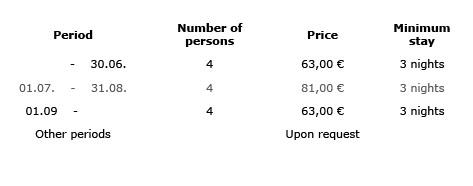 The prices are indicated for 4 persons. Extra person is charged 12,00€ per day.