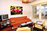A large living room, equipped kitchen and dining area with exit on a large terrace with a sea view