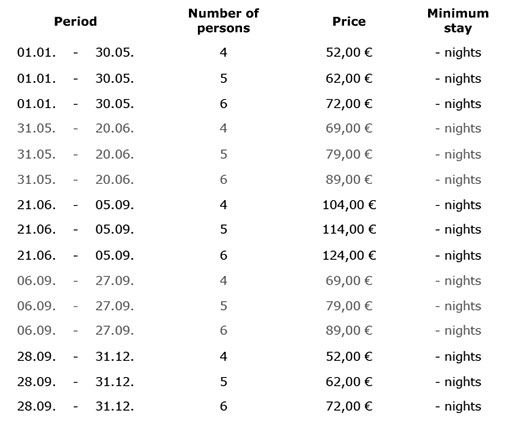 Prices include tourist taxes