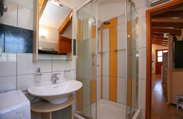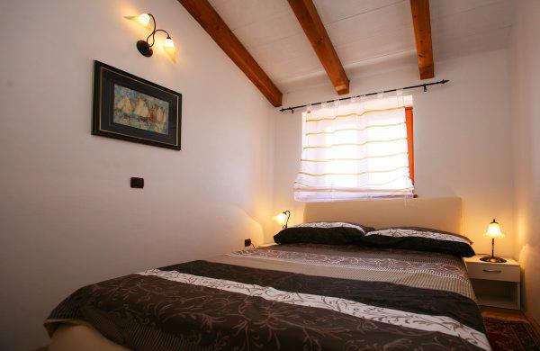 On the upper floor is an apartment with two bedrooms (one bedroom with a double bed and second bedroom with two single beds), a living room with a sofa bed for 2 persons, equipped kitchen and bathroom.
