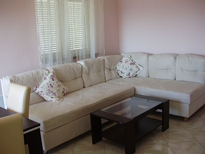 A living area with a sofa that can be extended and offer an extra bed for 2 persons