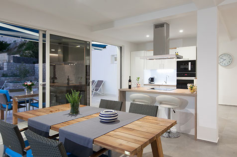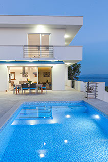The villa is surrounded by a beautiful Mediterranean garden, lavender, sage and rosemary scents and olive and tangerine trees.