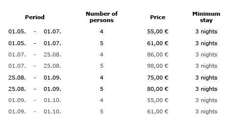 Apartment Milin V*** offers 57m2 of living space, can accommodate up to 5 persons and consists of: