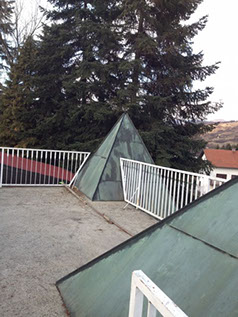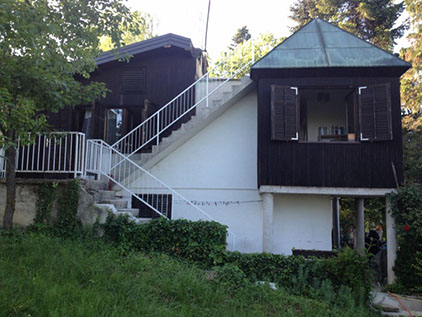Upper floor: second entrance with balcony, living room, 3 bedrooms and small bathroom.
